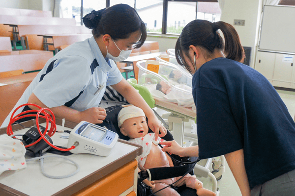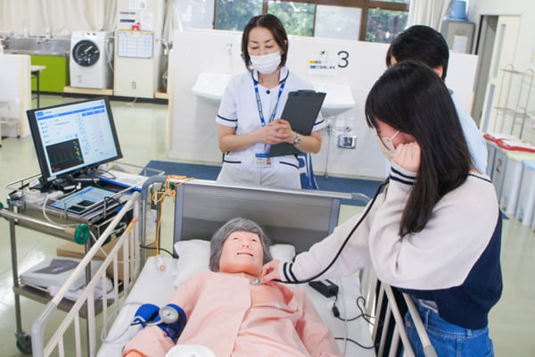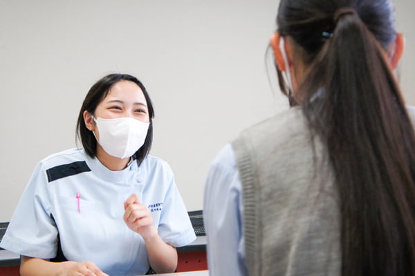 看護体験では、実際に使用している教材の紹介や体験、先輩から学校の様子もたくさん聞いてくださいね